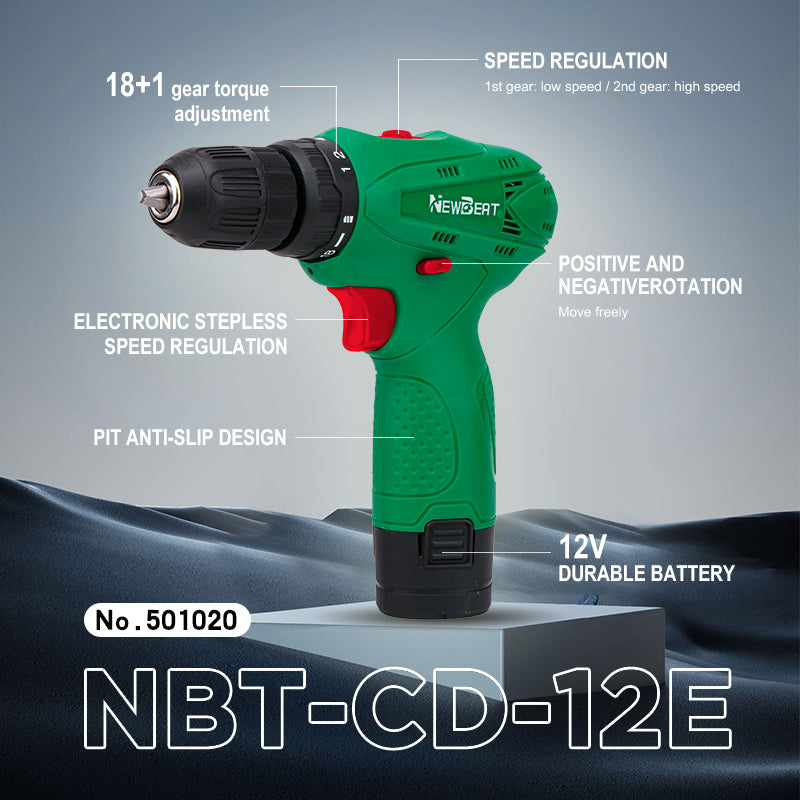 NewBeat 12V 3/8 Variable Speed 18+1 Torque 20N.m Cordless Drill Set with 1 Battery & 1 Charger