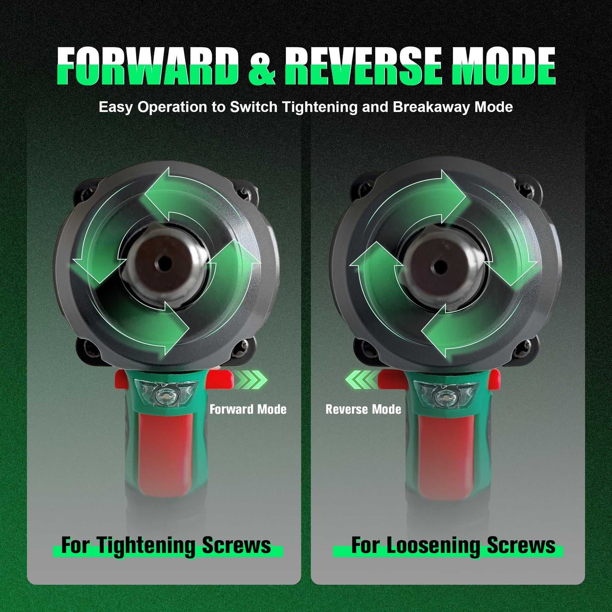- Impact Wrench and Impact Drill Dual Purpose: Just replace the sleeve and install the drill bit, it becomes an impact drill. Meet your diverse needs. The design of the rubber handle plays a role in anti slip and shock absorption, and it is not tiring to use for a long time. The built-in LED light allows you to work easily in dark spaces